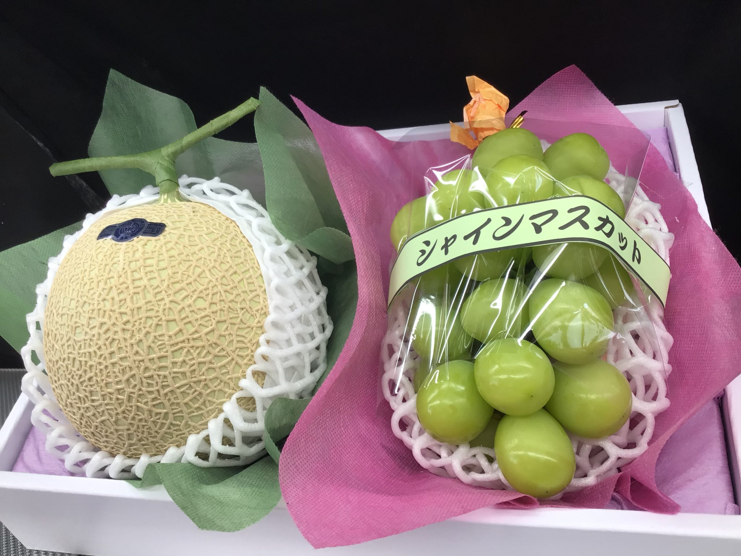 静岡県産クラウンメロンと信州産シャインマスカットのご紹介になります。